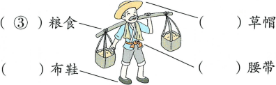 ①戴着 ②穿着 ③挑着 ④扎着( ③ )粮食 草帽