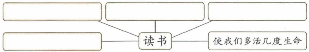 (1)、在作者眼中,读书有哪些好处?从文中梳理信息,填入下图中。(2)、作者在短文开头讲的小故事和读书有什么关系?这样写有什么好处?(3)、下面对画波浪线的句子中“丰富的人生”理解有误的是哪一项?( )A、古今中外的人生 B、跨越时间的人生 C、多姿多彩的人生 D、无所不知的人生(4)、文中画横线的句子中,“偷”字用得好吗?为什么?(5)、文中谈到的读书的众多好处中,哪一点引起了你的共鸣?谈谈你的感悟。 -
