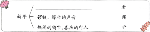 (1)、儿歌主要写了新年的哪些方面?(多选)( )A、植物的香气 B、热闹的声音 C、人们的笑脸 D、新年的美食(2)、乐乐和小伙伴对儿歌中的“花香”有不同的理解,下面说法正确的一项是( )A、梅花和水仙在新年这个时间段开放,所以可以闻到它们的花香。 B、新年期间,除了这两种花,还有其他的花开放,可以同时闻到多种花香。(3)、根据儿歌内容填一填,连一连。 -