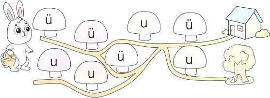 7、顺着单韵母“ü”的顺序走,小兔会走到哪里?请你画出路线。