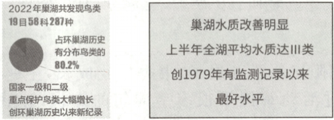 ③从重点保护鸟类的增长和水质监测结果,可以看出巢湖治理很有效。