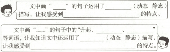 ④一道金光,打破了湖面的平静。一点点,亮光多了,湖面明了;渐渐地,星光淡了,月色浓了。抬眼观瞧,一轮明月从湖面升起,大如圆盘,状若明镜,抛洒在湖面上,泛起万点星光。