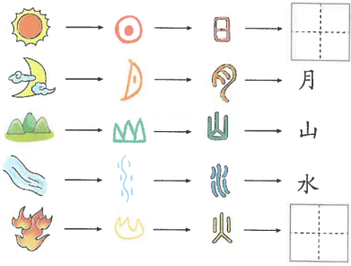 5、读一读,完成练习。形象的汉字(1)、照样子,在田字格里填上正确的汉字。(2)、选一选,填一填。(填序号)