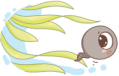 大家好!我是生活在池塘里的小蝌蚪(dǒu dòu),我想找到妈妈,请她教(jiāo jiào)我捕食的本领。我长着____的脑(nǎo lǎo)袋,____的身子,甩(yòng shuǎi)着____的尾巴。我的妈妈应该也长这样。