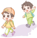 20、【整装出发】要出发了,他们在干什么?根据图片中人物的动作,选出合适的动词。(1)、