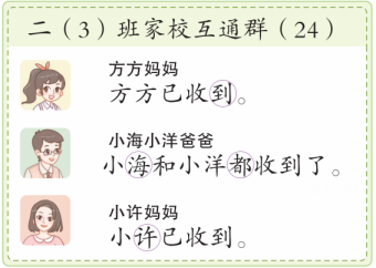 1、【发布通知】读一读家长群内的通知,按要求抄写图中画圈的汉字。