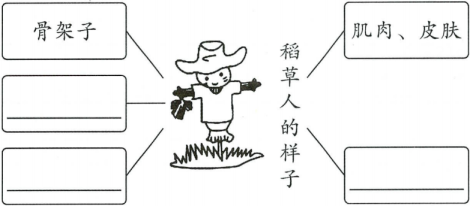 ②稻草人的骨架子是农人用细竹枝做的,肌肉是黄稻草做的。
