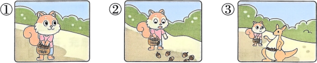 9、请你认真观察下面的图片,小松鼠遇到了什么困难?得到了谁的帮助?选择运用下面的词语,用几句话写下来。
