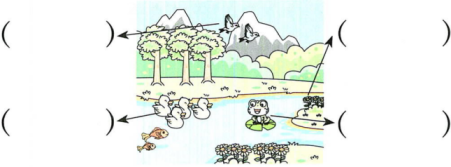 15、新新画了一幅画,画里的溪流、鸽子、青蛙和小鸭是怎么“说话”的?选一选。(填序号)