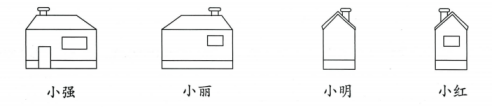 (1)、这座房子共有3扇窗和1 扇门。( )(2)、小丽是站在前面观察的。( ) -