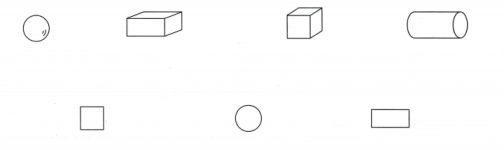 9、从球、长方体、正方体、圆柱的右面看,分别看到了什么图形?