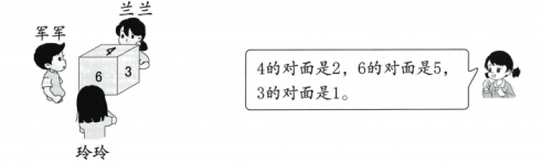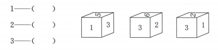 2、如图是一个标有1、2、3、4、5、6的正方体的三种不同摆法,与数字1、2、3相对的面的数字分别是什么?填一填。