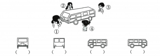 19、下面的四幅图分别是谁看到的?把相应的序号填在括号里。