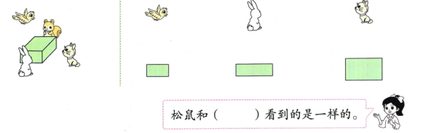 16、小动物们看到的分别是长方体的哪个面?连一连,填一填。