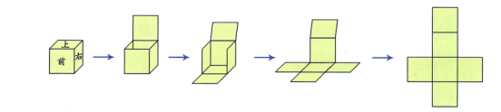 20、下面是一个正方体纸盒的展开过程:(1)、要得到一个正方体纸盒的展开图,需要剪开这个纸盒的条边。(2)、在展开图上标出“前”“后”“左”“右”“上”“下”。