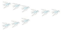 1、聪聪在一本少儿类书籍上学会了树叶贴画。他发现贴一只燕子要用5片树叶,贴一条金鱼要用4片树叶,贴一只蝴蝶要用3片树叶。(1)、他在一张纸上贴了一组“人”字形的燕子 (如图),一共用去多少片树叶?(2)、他在另一张纸上贴了6只蝴蝶和1条金鱼,一共用去多少片树叶?(3)、你还能提出其他数学问题并解答吗?