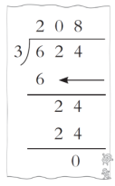 7、 每套校服用布3 米,624 米布能做多少套校服?蓝蓝用竖式计算出了结果(如图),竖式中箭头所指的数表示( )。A、做208 套校服需要用布624 米 B、做200 套校服需要用布600 米 C、做2 套校服需要用布6 米 D、做200 套校服需要用布60 米