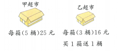 20、甲、乙两家超市卖同样的方便面。哪家超市卖得便宜些?