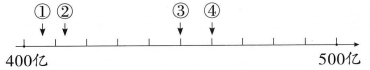 16、深中通道是粤港澳大湾区的核心交通枢纽之一,建成耗资约460亿元。在数线上能正确表示这个数的是( )。A、① B、② C、③ D、④