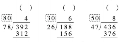 20、填一填。(1)、学校为布置花坛准备了83 盆花,每行要摆20盆,可以摆几行?(2)、小新的妈妈手机钱包里有256元,一盒定胜糕30元,能买几盒?