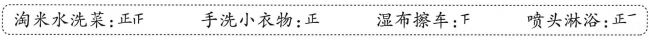 ③四(1)班同学中,用湿布擦车的家庭比用喷头淋浴的少个。