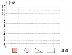 (2)、根据上边的数据完成条形统计图。(3)、填一填。①统计图中每格代表个图形。