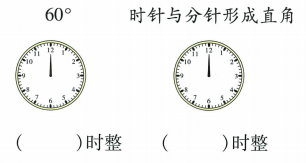 5、请按照给出的条件在钟面上画出时针,并记下所表示的时间。