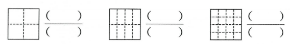 11、下面是3块一样大的巧克力,在每块巧克力中分别取走一部分,使取走的部分拼起来正好是一块完整的巧克力。请将取走的部分涂色,并用分数表示。