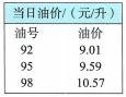 18、王老师下班经过加油站,准备给自己的车子加95号的汽油。加油前,油箱里的汽油还剩 , 当日油价如图,汽车油箱容积为60L,王老师的加油卡里还有400元,能将油箱加满吗?