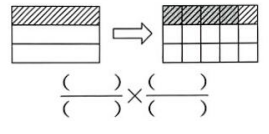 11、写一写,画一画。(1)、写出下图所表示的分数乘法算式。(2)、在图中画出下面分数乘法算式的意思。