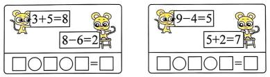 14、图中小鸟的只数可以用算式“6-2+4=8”来解决,算式中的数表示的意义错误的是( )。A、“6”表示原来有6只小鸟 B、“2”表示飞走2 只小鸟 C、“4”表示又飞走4 只小鸟