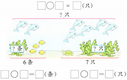 1、用你喜欢的方式表示下面的算式,再填一填。(1)、4+1=(2)、2+2=