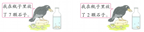 14、乌鸦喝水。(1)、两只乌鸦一共放了多少颗石子?