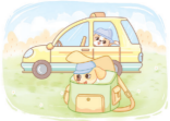 The cat is in the cab.