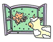"It is snowing heavily outside. Let me open the . Come in,please," says the cow.