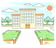 19、校园一角风景独特。看图,选择相应的单词,抄写在四线三格内。