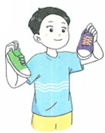 13、班级组织去公园郊游,小朋友们正在准备自己喜欢的服饰。判断对话与图片是否相符。(1)、