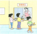 9、Jim和朋友们在宠物救助站做志愿者。读对话,选出相符的图片。(1)、— Good morning!