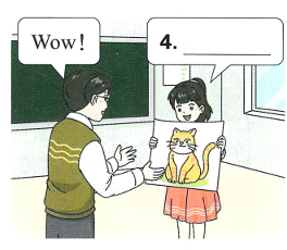 5、同学们在向MrJones展示自己的美术作品。看图,选择合适的选项补全对话。
