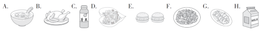 ⒈阅读材料,选择相应的食物,并把字母标号写在相应横线上
