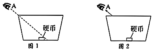 19、实验小组将一枚硬币放在不透明的盆中进行观察。请你结合所学知识回答以下问题。(1)、如图1所示,眼睛在A处恰好看不到硬币,这是因为( )。A、光发生了反射 B、光发生了折射 C、光发生了色散 D、光沿直线传播(2)、如图2所示,向盆里注满清水后,眼睛在A处就能看到盆中的硬币了,这是因为( )。A、光发生了反射 B、光发生了折射 C、光发生了色散 D、光沿直线传播(3)、图2所示是加水后看到硬币的光路图(部分),请你将光路图补充完整。(4)、如图2所示,眼睛在A处比真实看到的硬币位置要( )。A、浅一些 B、深一些 C、位置不变 D、无法判断(5)、根据此次实验,实验小组认为渔民在渔船上叉鱼时(如图所示),看到的鱼在b处,瞄准位置( )更利于叉到鱼。A、a B、b C、c D、无法判断