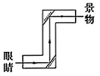 8、如图所示,一位小朋友正在使用自制潜望镜观察景物。关于光在潜望镜中的传播路线,下列表示正确的是( )。A、
