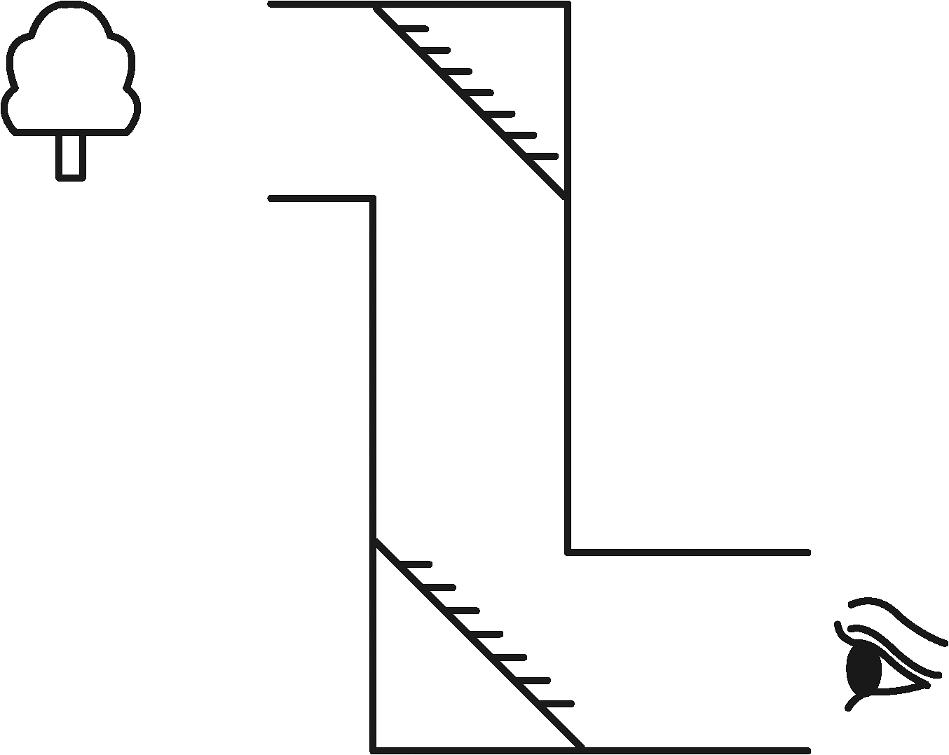 14、下面三幅示意图,人眼可以通过潜望镜看到树的像的是( )。A、
