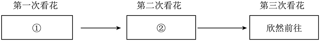 (1)、编剧组梳理了三次“看花”时“我”态度的转变。请依据文章,补全方框处内容。(2)、扮演“母亲”的演员发现有两句台词非常相似。请结合原文分析AB两个语句在语气上有何不同。A“听说北海的花都开了,我推着你去走走。”