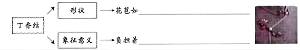 (1)、梳理内容,填写对“丁香结”的理解。(2)、画横线的句子中,作者由联想到了。从这句话中,我能感受到作者的人生态度。下列句子中,最能表达出这种人生态度的一项是。A.宝剑锋从磨砺出,梅花香自苦寒来。