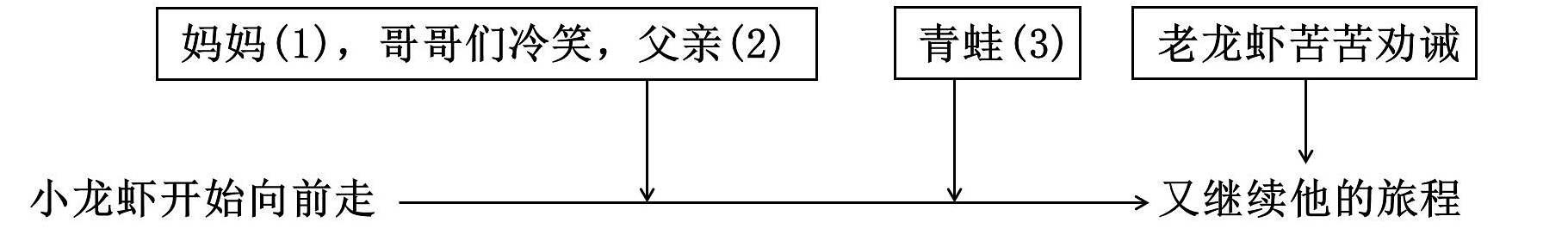 ①一只小龙虾想:“我家族里的人为什么全都向后退着走?我真的想开始向前走,像青蛙一样。如果不成功,我就不要尾巴。”他开始在家乡小溪的鹅卵石之间偷偷地练习,头几天的练习把他给累坏了。他四处碰撞,虾壳撞肿了,脚也被自己踩疼了。不过,情况一点一点地好起来了,这就像你可以学会任何东西,只要你真的想学。等他信心十足时,他跑去对家人说:“你们看看我。”然后,他向前行走了一小段路。