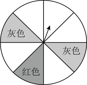 7、如图,转盘中8个扇形的面积都相等,部分扇形涂了灰色和红色,其余部分为白色,任意转动这个转盘1次,当转盘停止转动时,指针落在灰色区域的概率为( )A、 B、 C、 D、