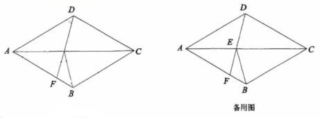7、如图,在菱形ABCD中, , E是对角线AC上的点, , 连线DE,并延长交AB于点F,连线BE.(1)、求证:.(2)、若 , 求DE的长.(3)、已知 , 求菱形ABCD的面积.