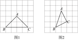 3、 在的网格中,∆ABC的三个顶点都在格点上,我们把这种顶点在格点的三角形叫格点三角形,请按要求完成下列作图.(1)、在图1网格中画出一个∆ADE,使 , 相似比为 , 且各顶点都在格点上.(2)、在图2的网格中作出与△ABC相似的最小格点△FGH.