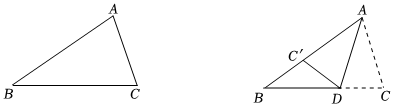 我们曾做过“折纸与证明”的数学活动.折纸,即构造轴对称,常能为我们提供解决问题的思路和方法,例如,在△ABC中,AB>AC(如图),怎样证明∠C>∠B呢?分析:把AC沿∠A的角平分线翻折,因为AB>AC , 所以点C落在AB上的点C'处;即AC=AC' , 据以上操作,易证明△ACD≌△AC'D , 所以∠AC'D=∠C , 一又因为∠AC'D>∠B , 所以∠C>∠B.